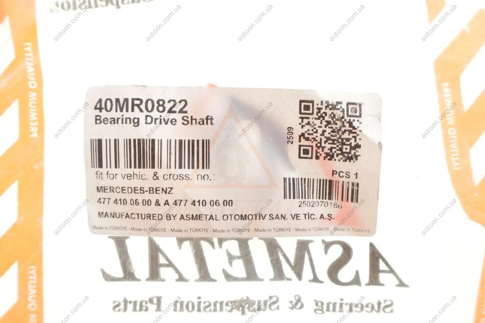 Комплект підвісної опори карданного валу з кульковим підшипником ASMETAL 40MR0822