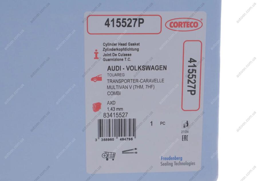 Прокладка головки блока цилиндров VAG Multivan, Transporter 03-09 CORTECO 415527P
