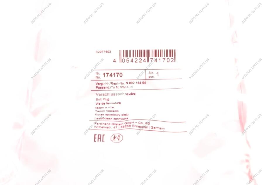 Пробка зливу мастила FEBI BILSTEIN 174170