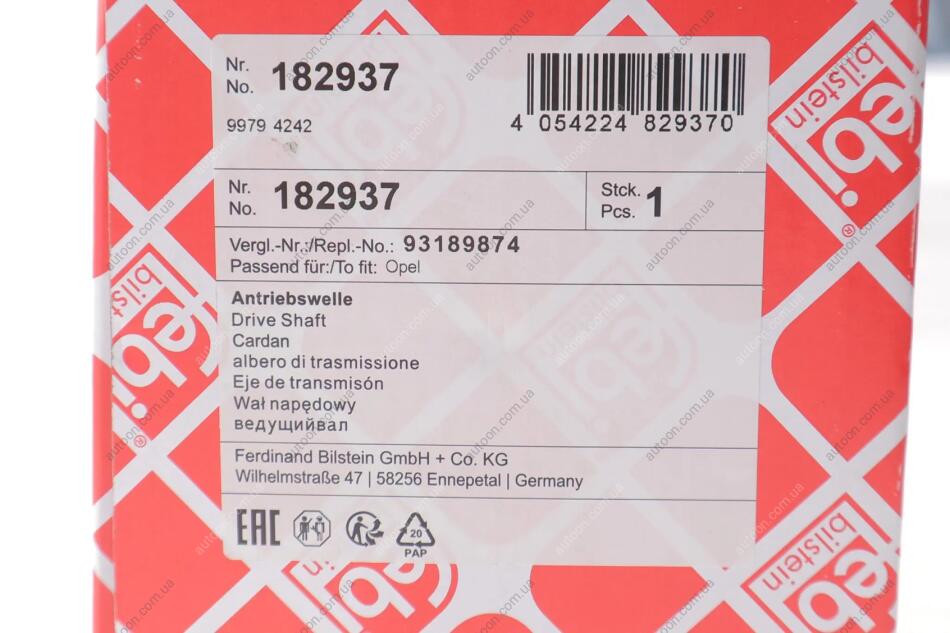 К-т валу привідного FEBI BILSTEIN 182937