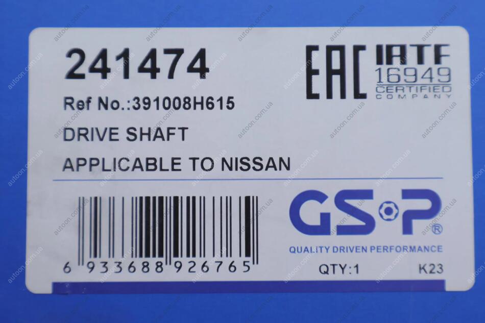 Піввісь передн. прав. L 547 мм NISSAN X-TRAIL I 2. 0 01- GSP 241474