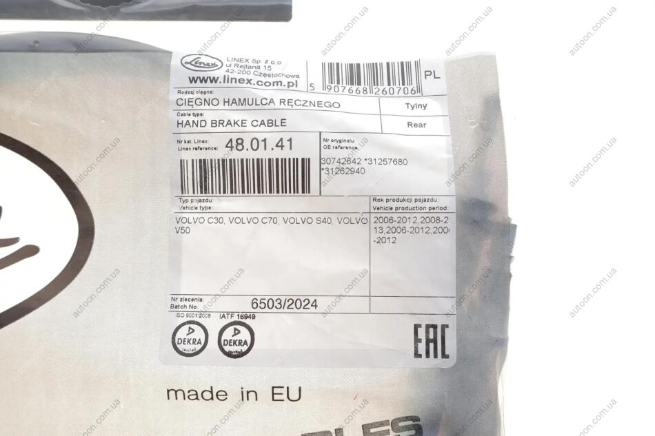 Трос ручного гальма LINEX 48.01.41