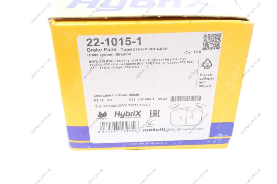 Комплект гальмівних колодок (дискових) Metelli 22-1015-1
