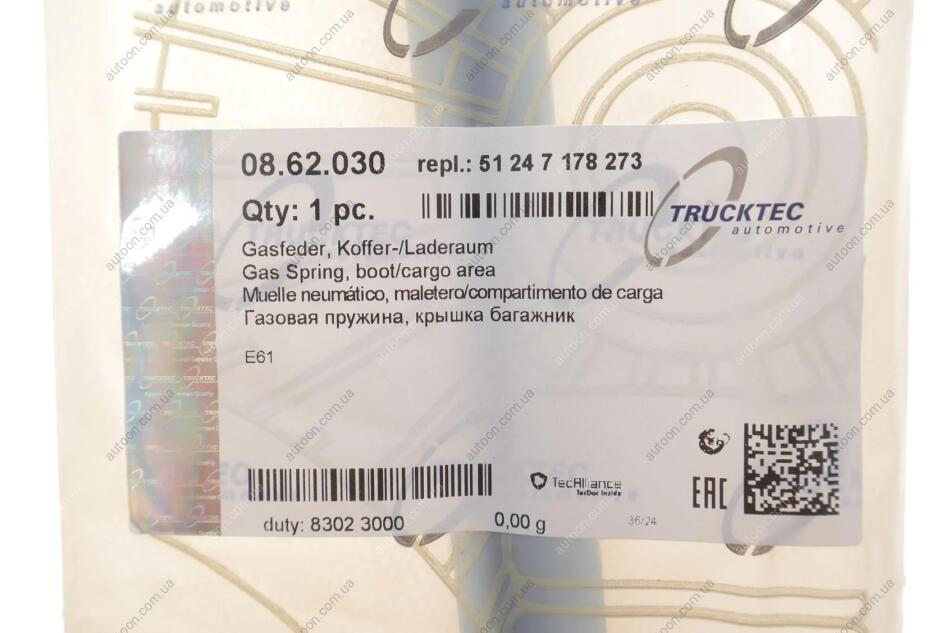 Газова пружина, багажник/кузов TRUCKTEC 08.62.030