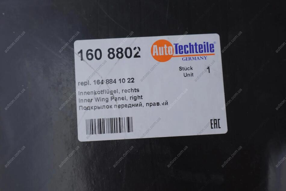 Підкрилок крила, матеріал пластик AUTOTECHTEILE 160 8802