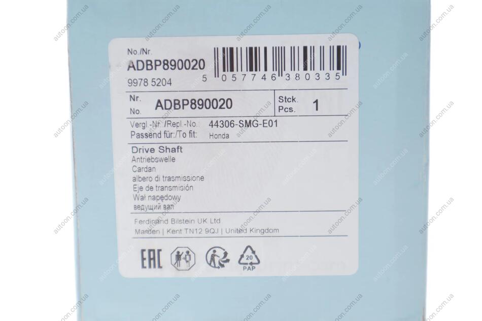 Привідний вал передн Лів HONDA CIVIC VIII 1.4/1.8/1.8ALK 09.05-12.13 BLUE PRINT ADBP890020