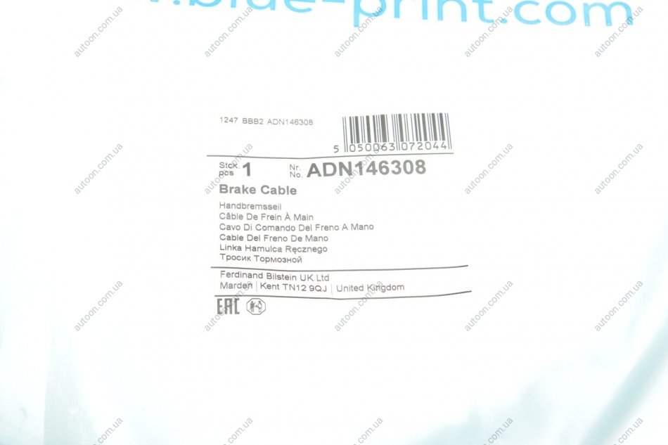 Трос ручних гальм BLUE PRINT ADN146308