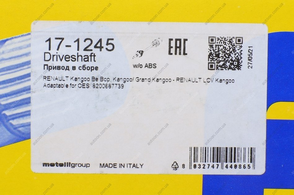 Привідний вал Metelli 17-1245