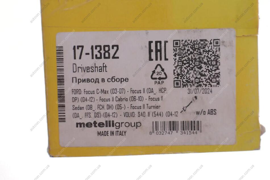 Привідний вал Metelli 17-1382