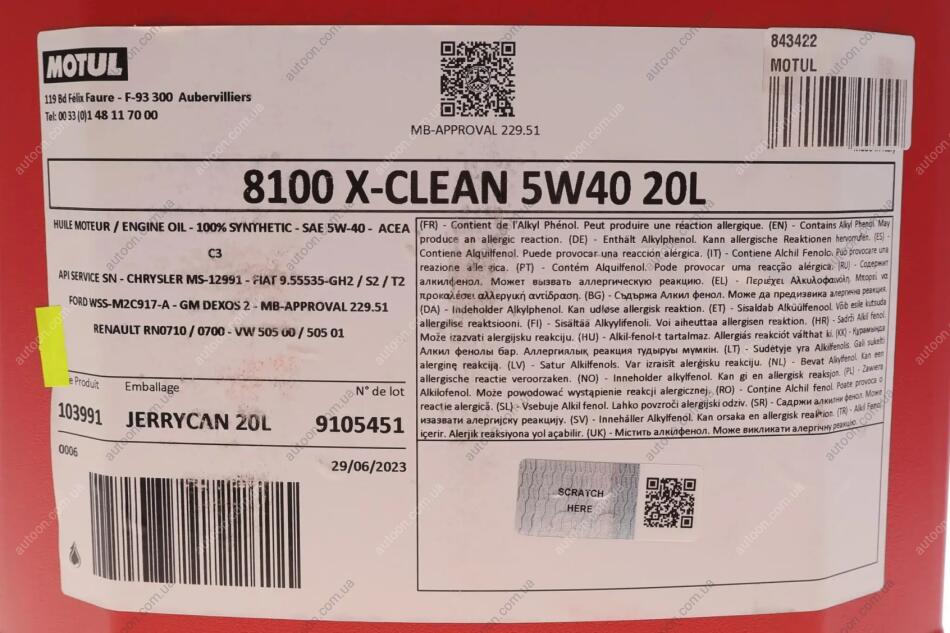 Олива 8100 X-clean 5W40 20L MOTUL 843422