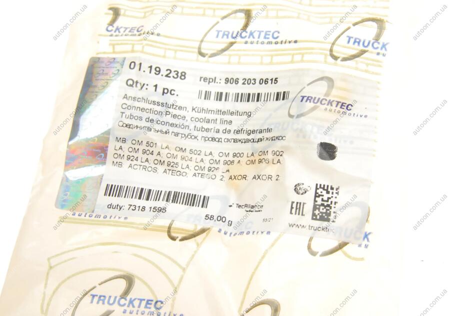 Патрубок системи охолодження TRUCKTEC 01.19.238