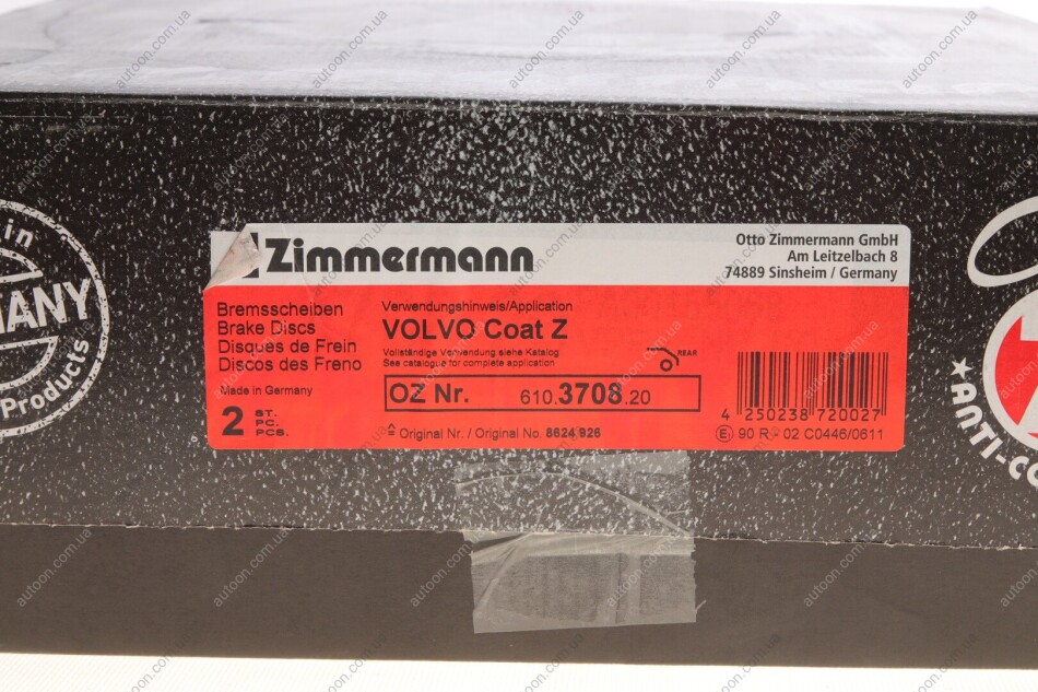 Диск гальмівний ZIMMERMANN 610.3708.20